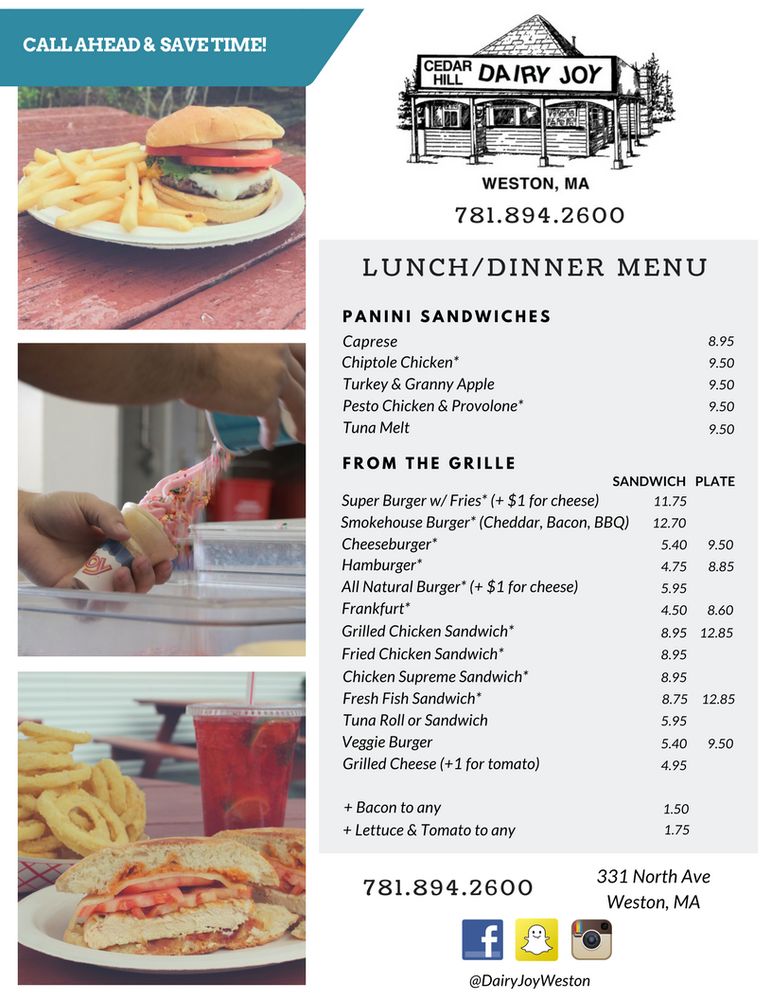 Dairy Joy Menu